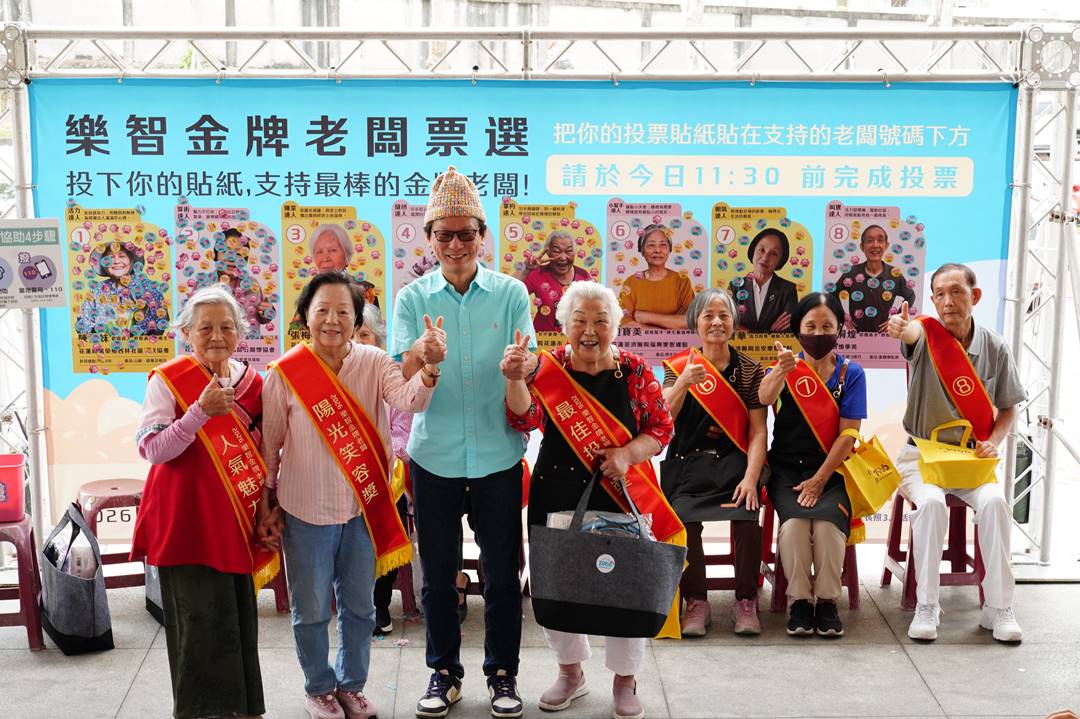 經現場民眾投票,選出3位金牌老闆,分別由花蓮縣萬榮鄉西林社區發展協會的陳愛妹阿嬤,榮獲「樂智人氣魅力獎」、花蓮縣鳥踏石關懷協會據點的林春子阿嬤,獲得「樂智陽光笑容獎」、花蓮慈濟醫院環保站樂智據點的邱清妹阿嬤,榮獲「樂智最佳投入獎」,由朱局長親自為得獎者掛上彩帶。