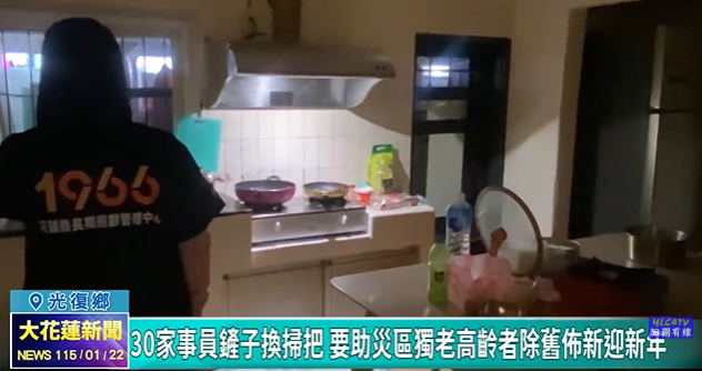 由彭婉如文教基金會家事管理員進駐獨居長照個案家中,運用其家事整理專長,協助進行災後居家清掃、物品分類收納及環境整理,讓長者於年前擁有乾淨、安全的居住空間,展現公私協力推動災後長照服務之成效。民眾如有長照服務需求,可洽詢光復鄉衛生所長照分站電話(03)8701114、(03)8701955,或撥打全國專線1966,將有專人提供諮詢與協助,讓有需要的鄉親即時獲得適切的長照資源與支持。