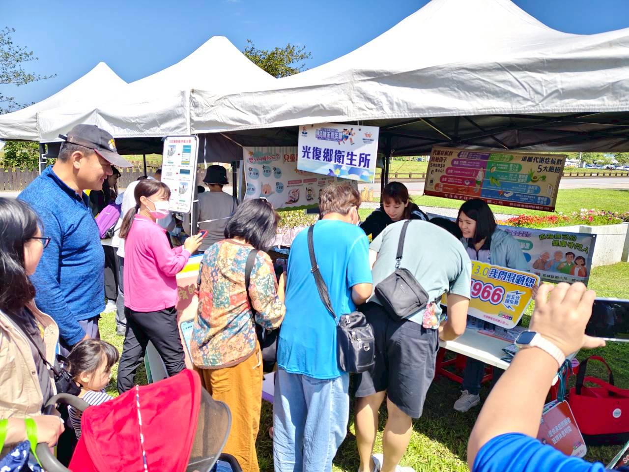 光復衛生所長照分站受邀參與本次活動設攤宣導,向現場民眾介紹長照服務相關資源,包括政府推動的長照四包服務,協助有長照需求的長者及家庭獲得適切照顧支持。此外,現場亦宣導家庭照顧者支持服務及失智症照顧服務相關資源,讓長期照顧家人的家庭照顧者能獲得必要協助與支持。