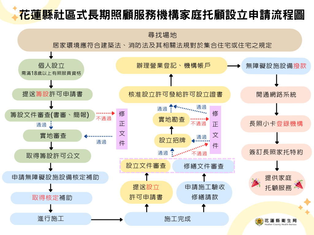➤花蓮縣社區式長期照顧服務機構-家庭托顧設立申請流程:
