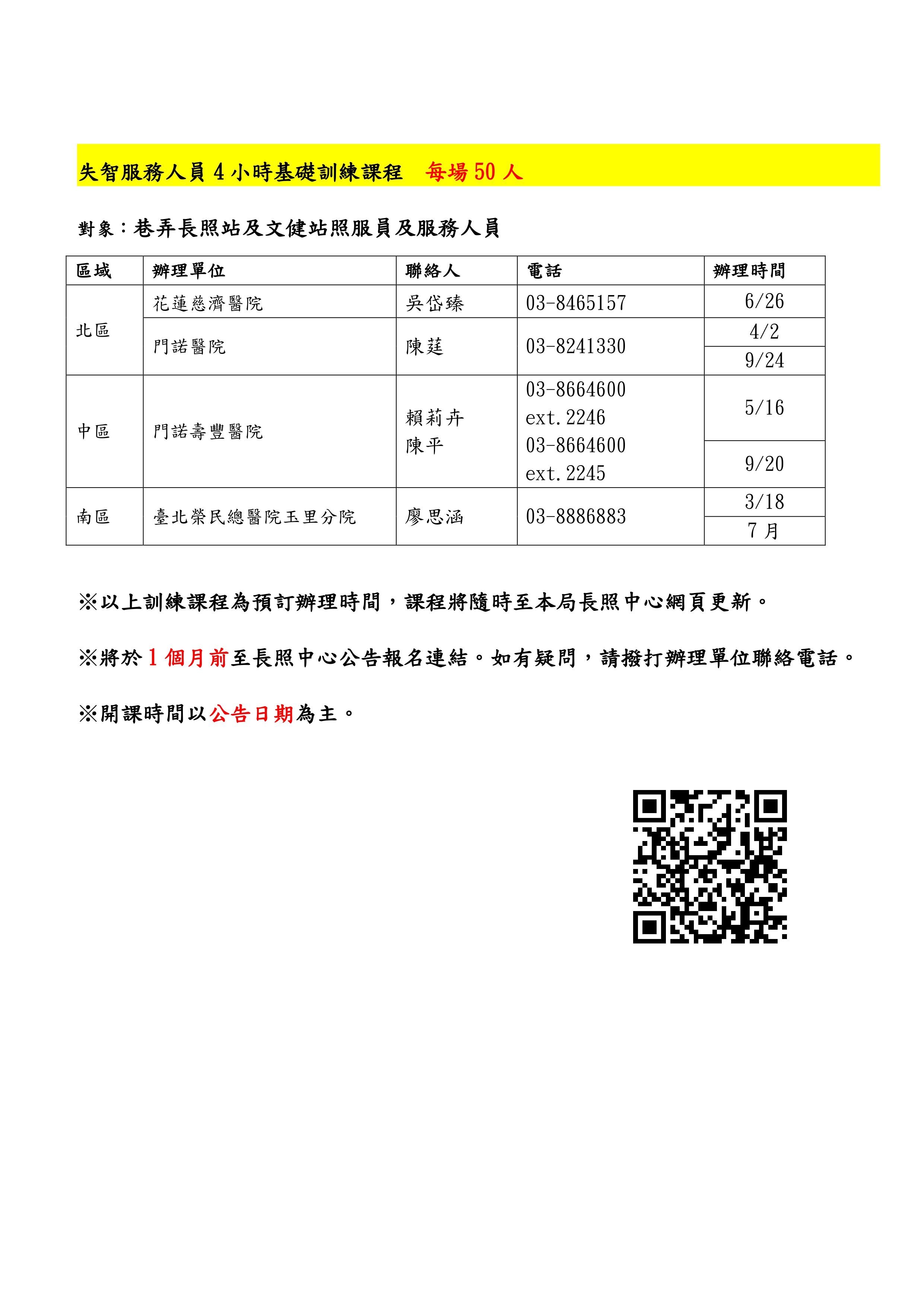 失智共照中心預計辦理專業人才培訓課程一覽表